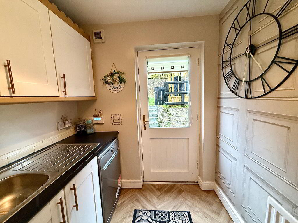 Utility Room Eye and low level units, single drainer stainless steel sink unit with mixer taps, plumbed for washing machine, space for tumble dryer, plumbed for dishwasher.