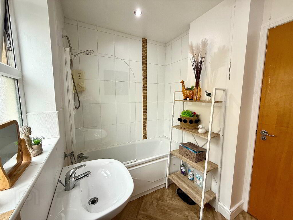 En-suite Fully tiled shower (currently not used), wash hand basin and WC, partly tiled walls.