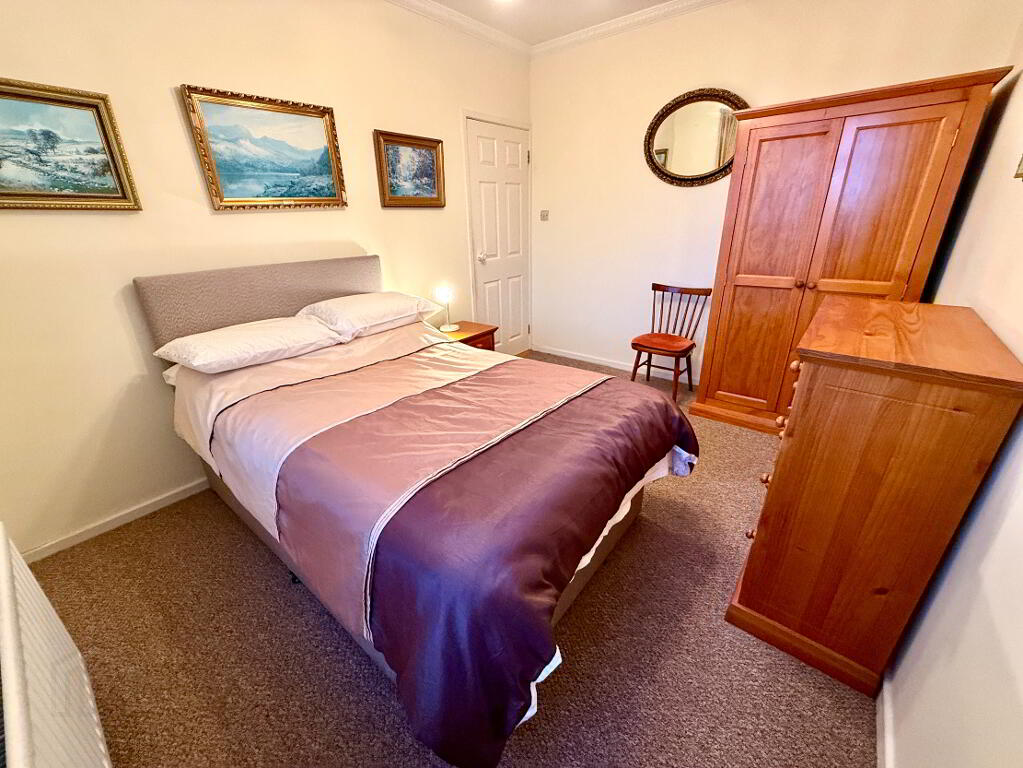 Shower Room Level access electric shower, wash hand basin and WC, heated towel rail, fully tiled walls.