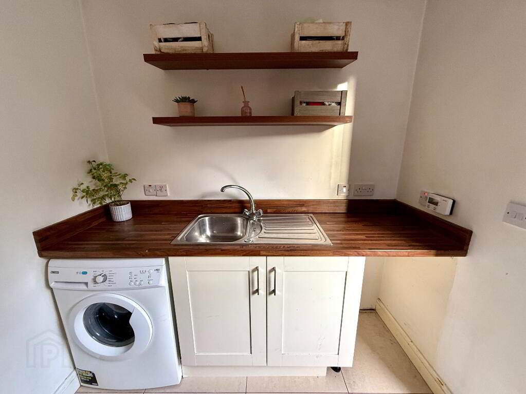 Utility Room Low level units, single drainer stainless steel sink unit with mixer tap, plumbed for washing machine.