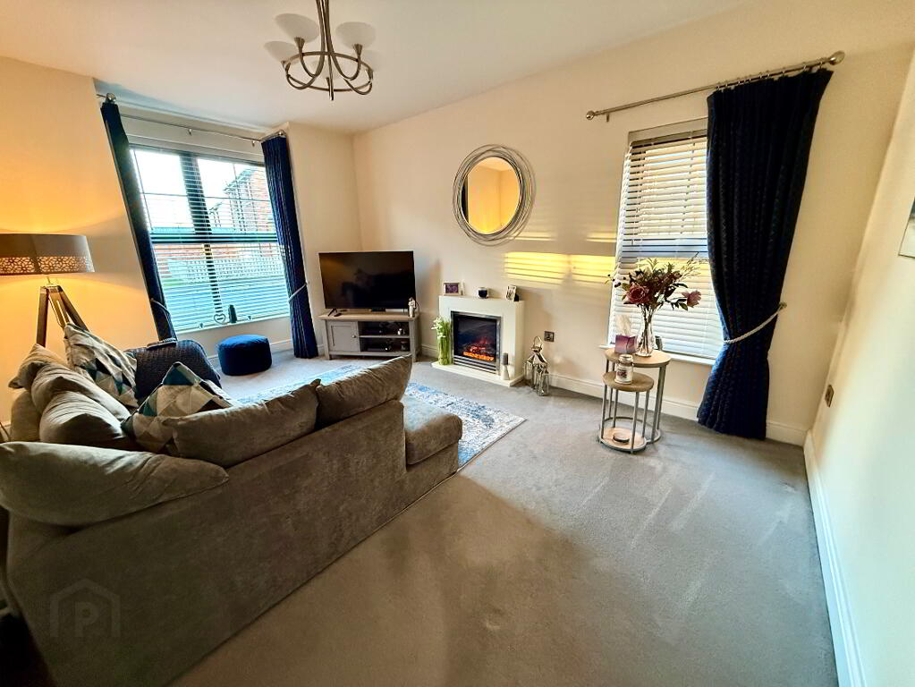 Lounge 17'4 x 11'4 (to widest points) Box window, electric fire.