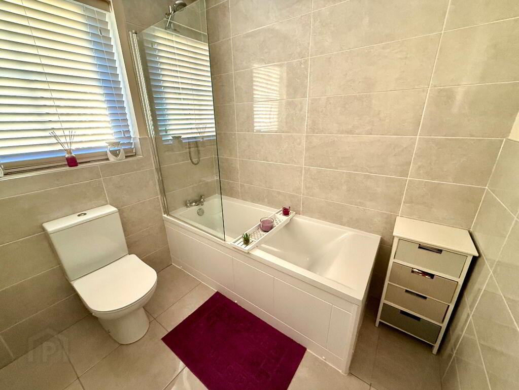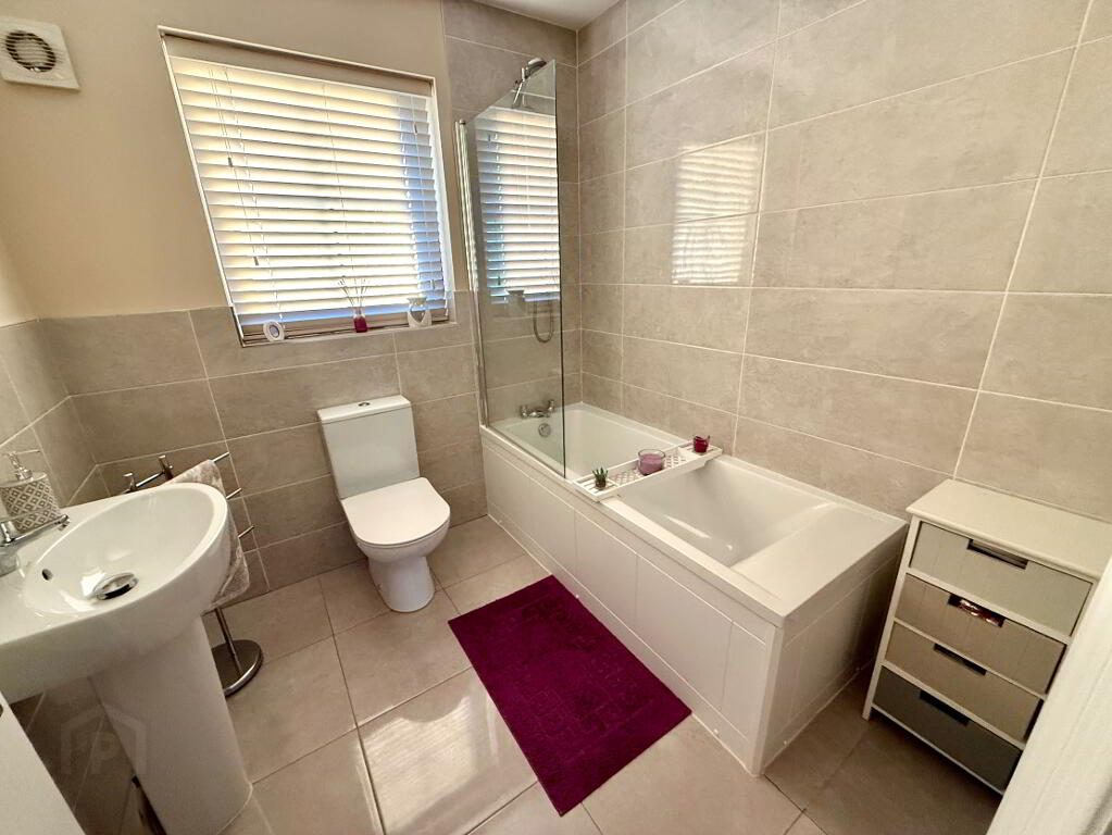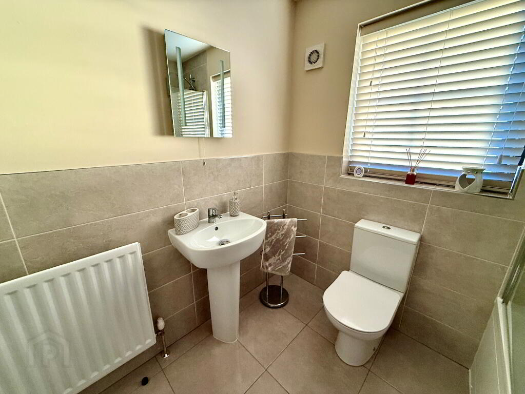 Ensuite Fully tiled walk in shower, wash hand basin and WC.