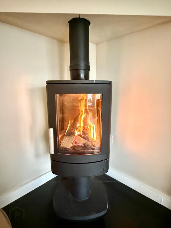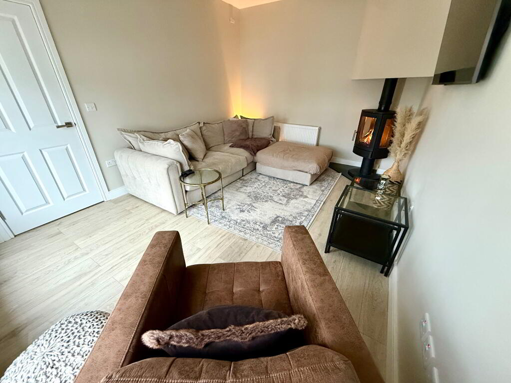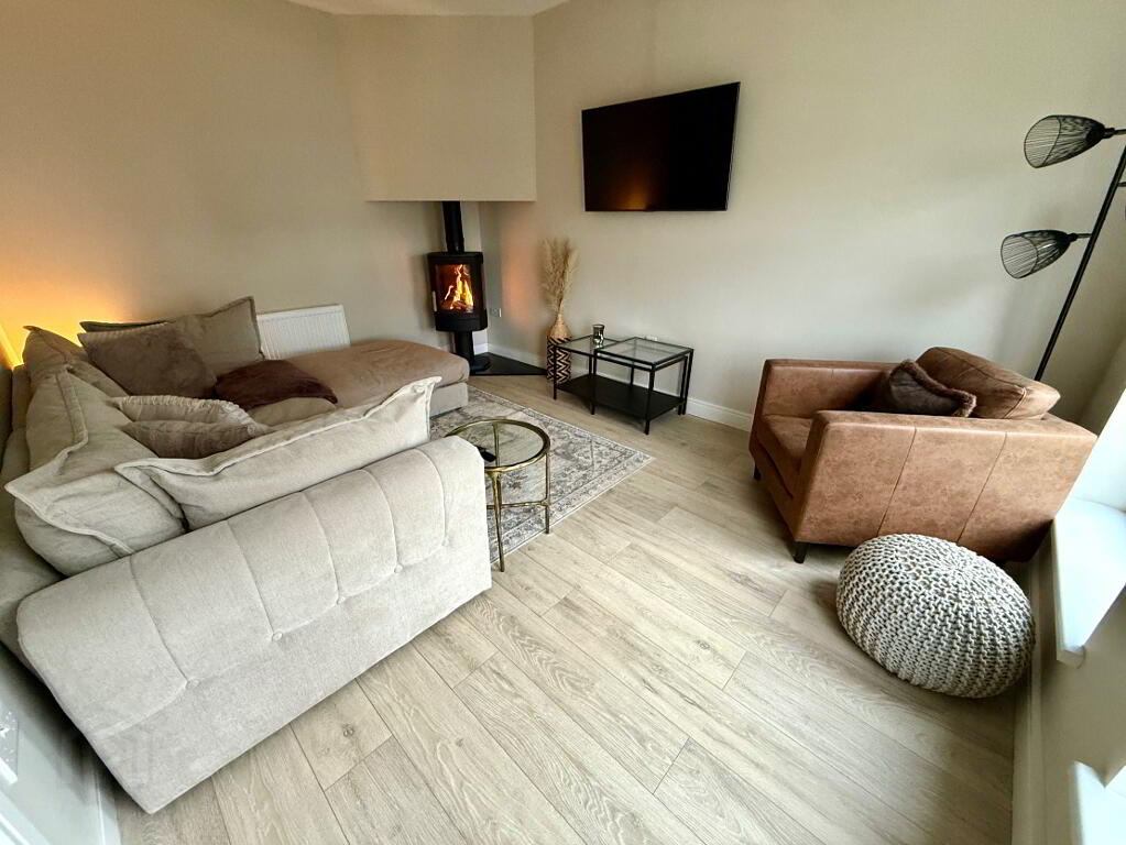 Lounge 14'8 x 10'8 (to widest points) Gas stove, laminated wooden floor.
