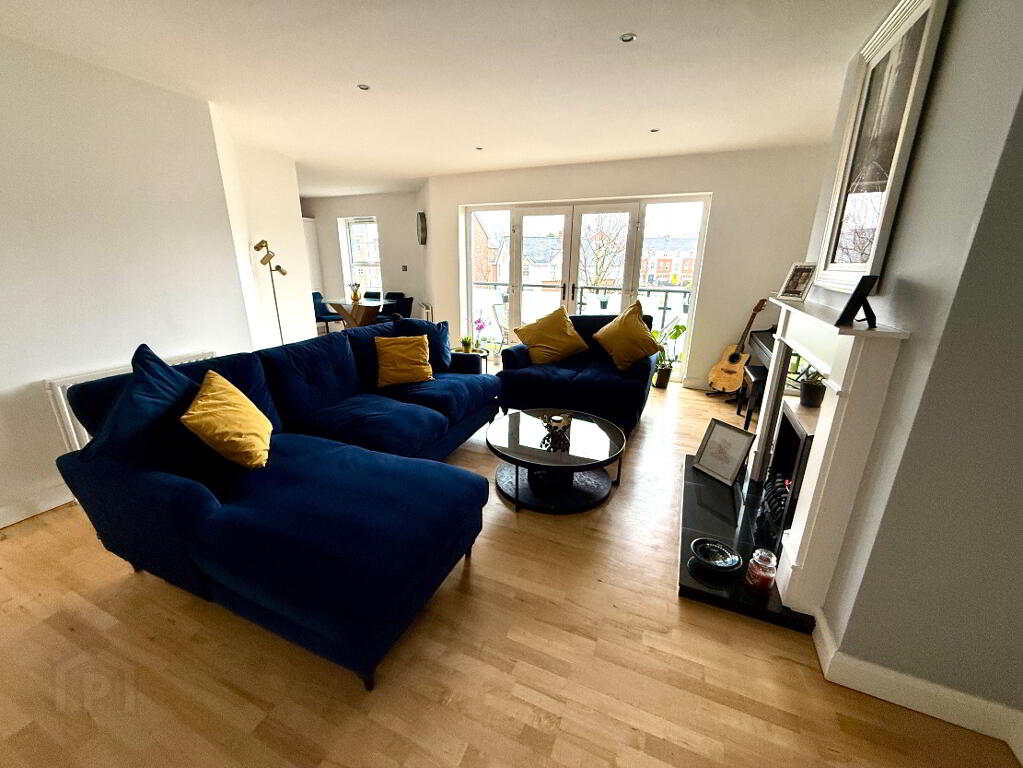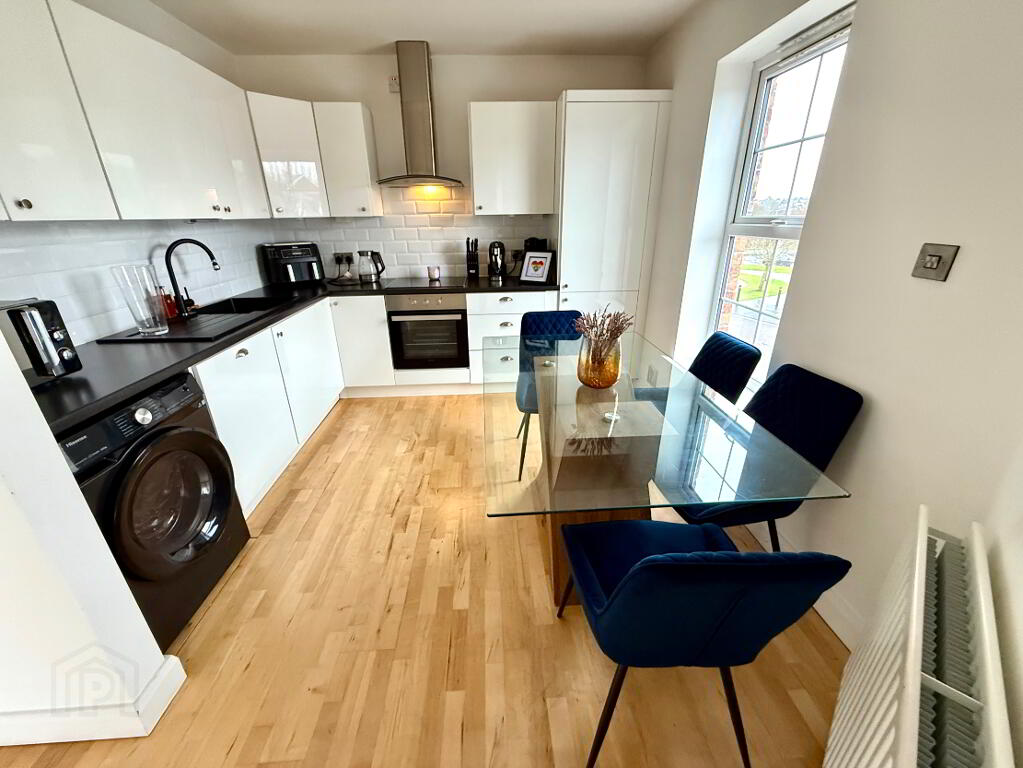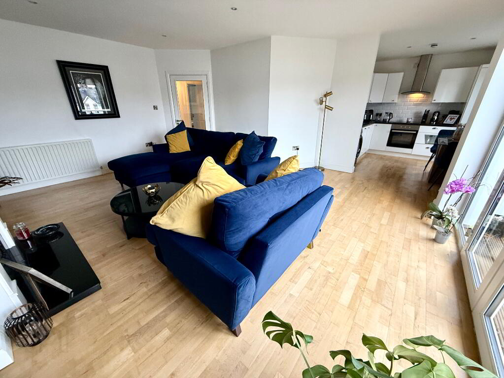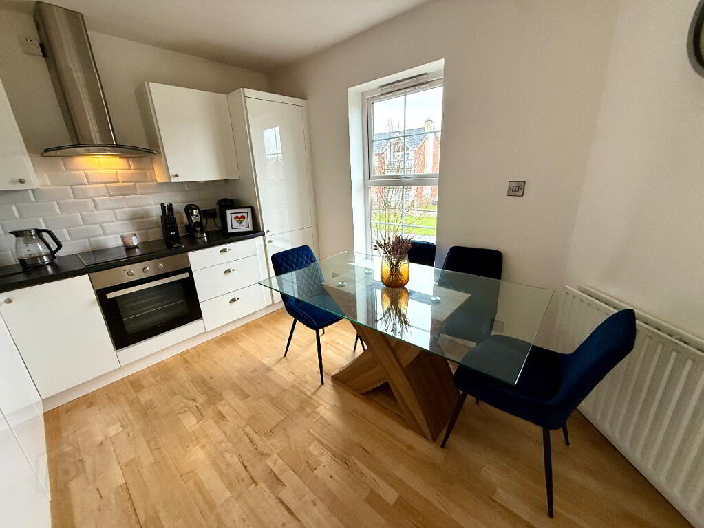 Lounge/Kitchen/Dining 26'10 x 17'6 (to widest points) Granite fireplace and hearth with wooden surround, gas fire, double patio doors, Eye and low level units, single drainer coloured sink unit with mixer tap, integrated dishwasher, integrated fridge/freezer, washer/dryer, hob, oven and extractor fan, partly tiled walls, wooden floor, recessed lighting.