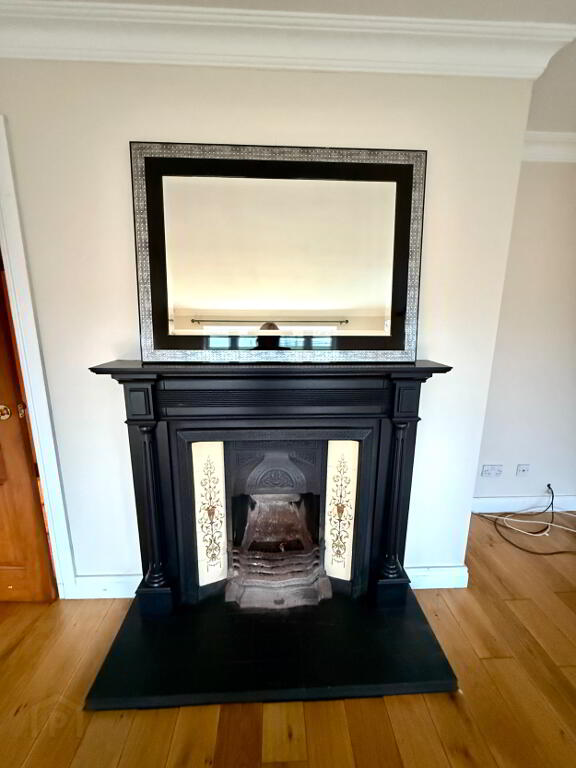 Family Room 19'2 x 14'7 (to widest points) Dual aspect,bay window, cast iron fireplace with wooden surround and tiled insert, ceiling cornicing, wall lights and wooden floor.