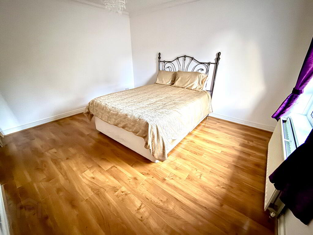 Bedroom 5 11'2 x 12'9 Laminated wooden floor, ceiling cornicing.