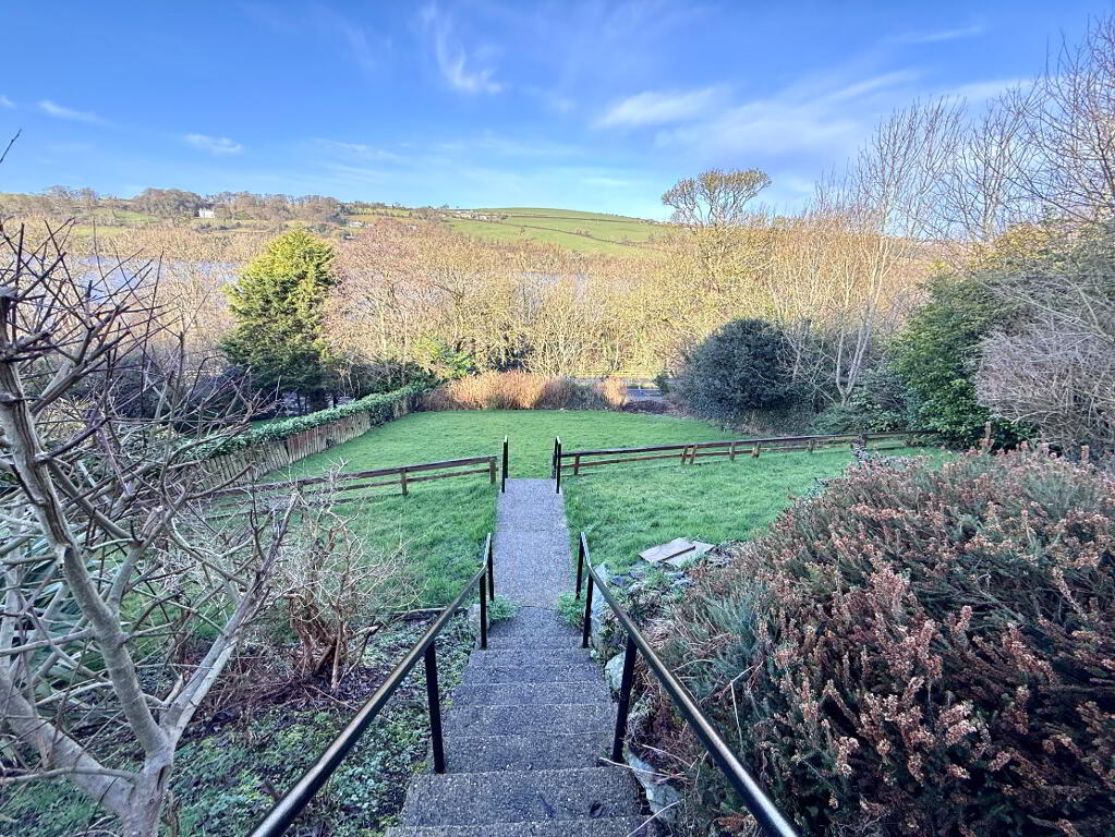 Large tiered gardens to rear with steps between each level.