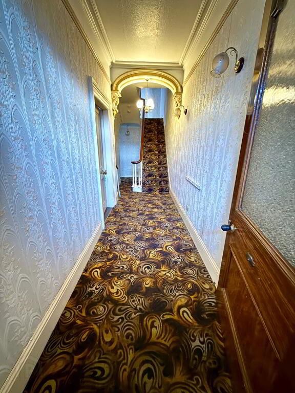 Hallway Ceiling cornicing and picture rail, storage cupboard.
