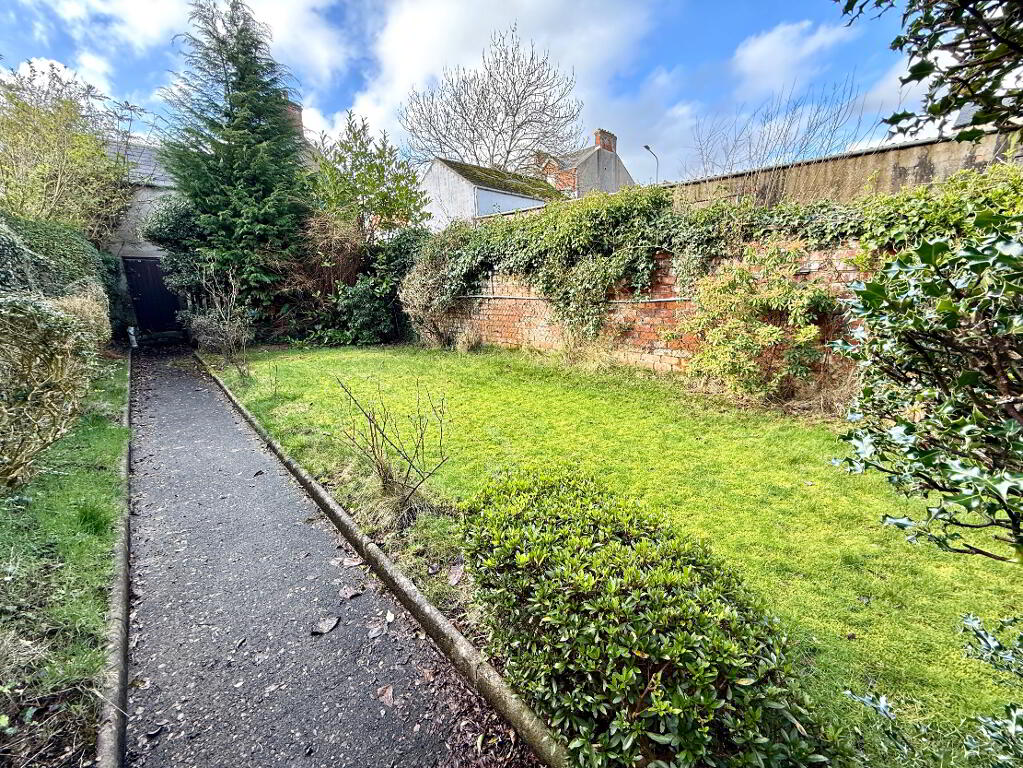 Concrete area to rear leading to garden laid in lawn with access to mews lane.