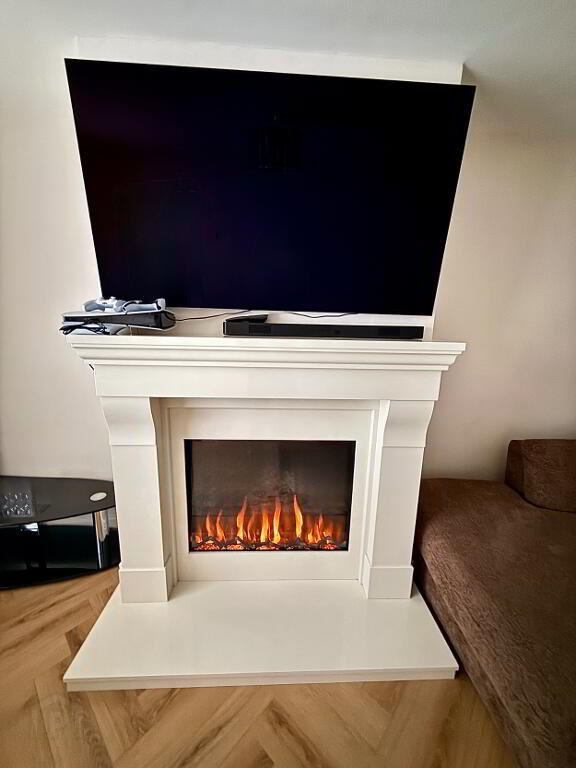 Lounge 16'4 x 12'4 (to widest points) Marble fireplace and hearth with electric fire, laminated wooden floor.