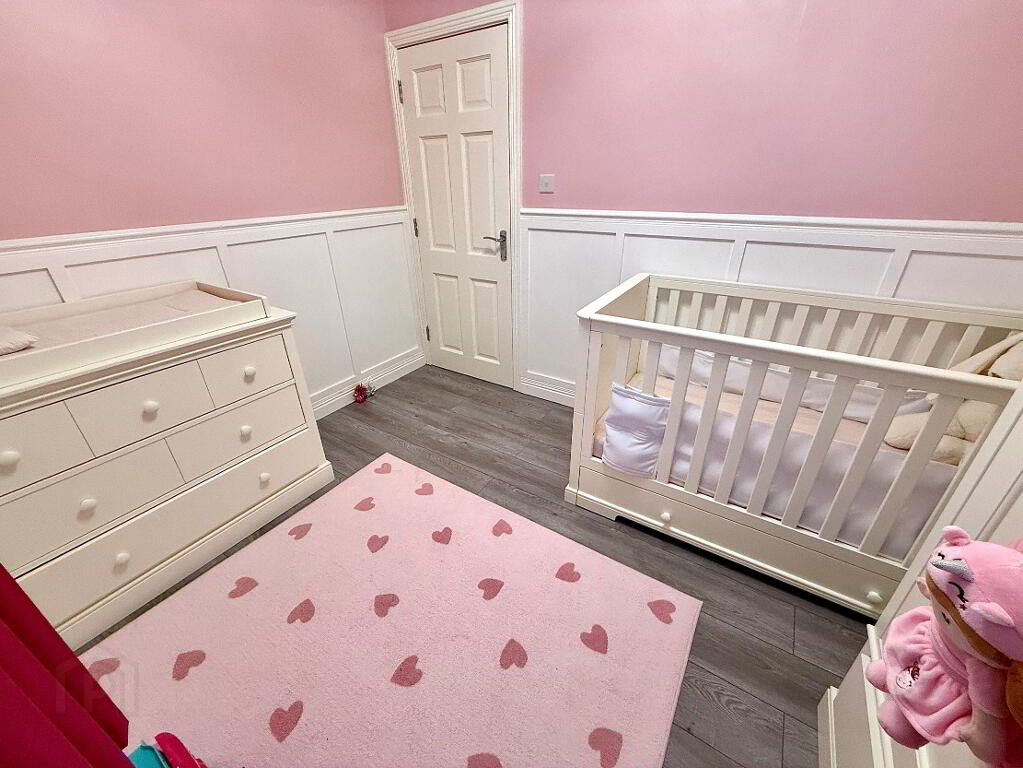 Bedroom 3 10'4 x 7'10 Walls partially wood panelled, laminated wooden floor.