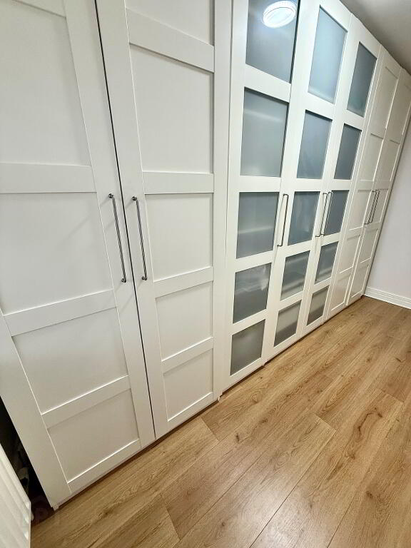 Bedroom 1 12'3 x 12'4 (to widest points) Laminated wooden floor.