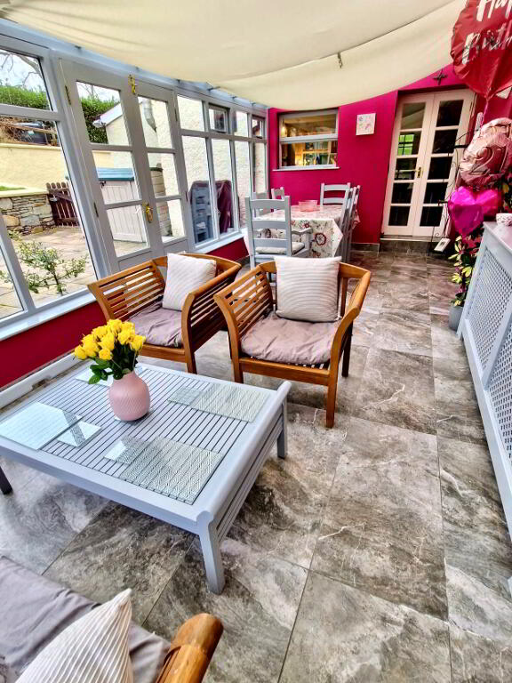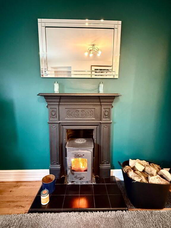 Family Room 15'11 x 13'2 (to widest points) Cast iron fireplace with multi fuel stove, laminated wooden floor, double doors to conservatory.