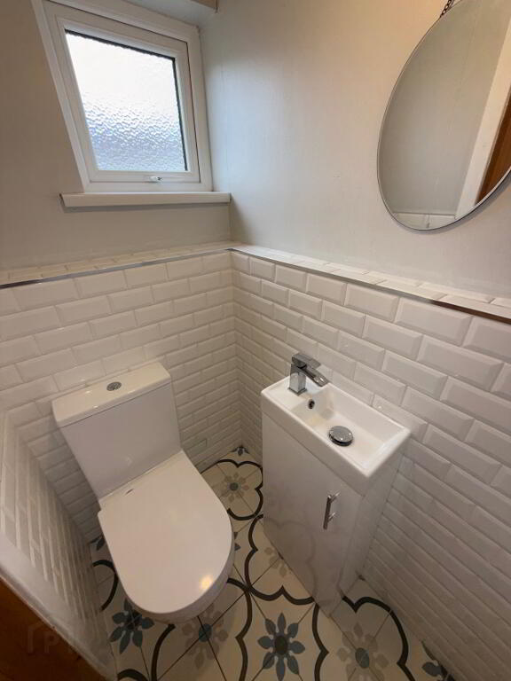 Downstairs WC WC and wash hand basin, partly tiled walls.