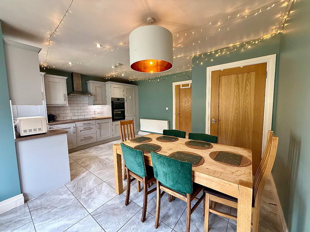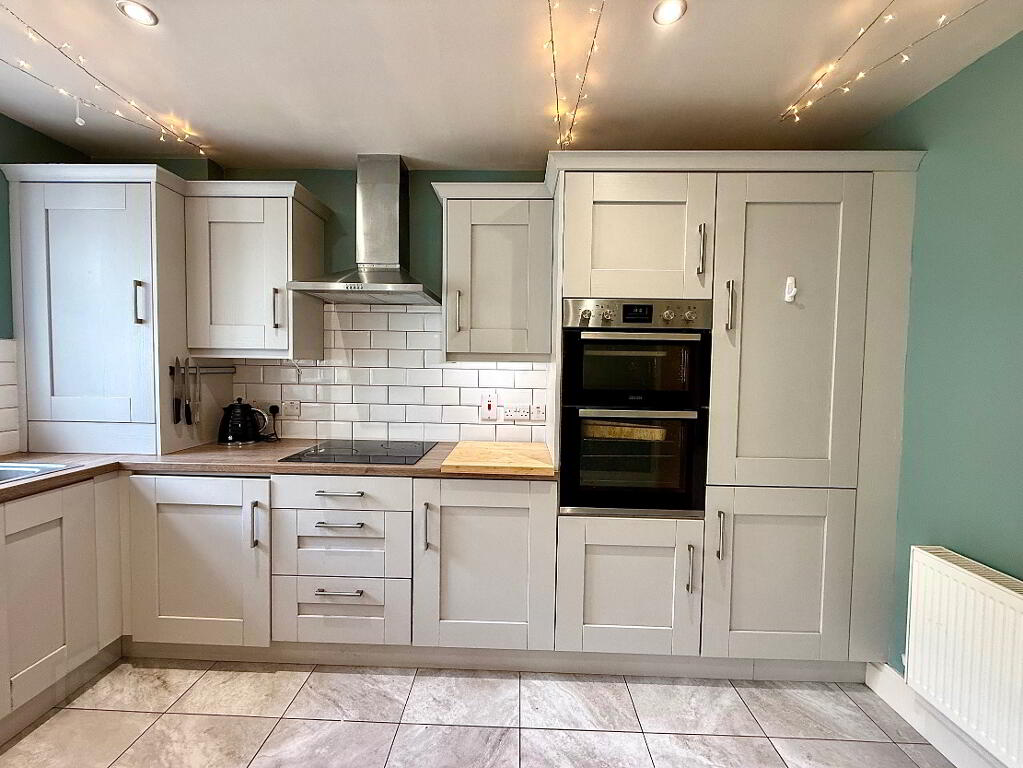 Kitchen/Dining 15'11 x 17'8 (to widest points) Eye and low level units, single drainer stainless steel sink unit with mixer tap, double wall oven, hob, extractor fan, integrated dishwasher, plumbed for washing machine, larder cupboard, double patio doors, recessed lighting in kitchen area, tied floor.