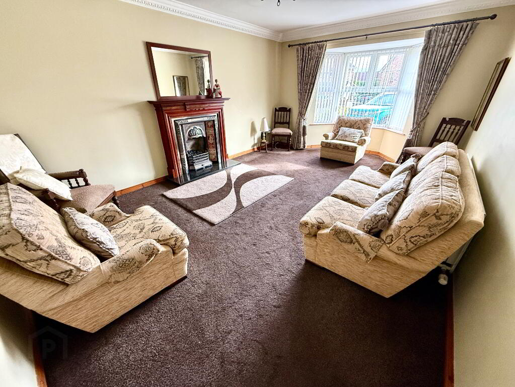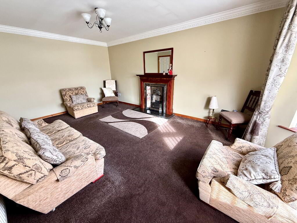 Lounge 18'7 x 12' (to widest points) Bay window, cast iron fireplace with wooden surround and tiled insert, ceiling cornicing.