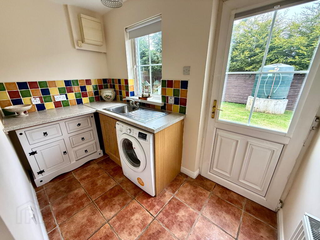 Utility Room Low level units, plumbed for washing machine, stainless steel sink unit with mixer tap, partly tiled walls, tiled floor.