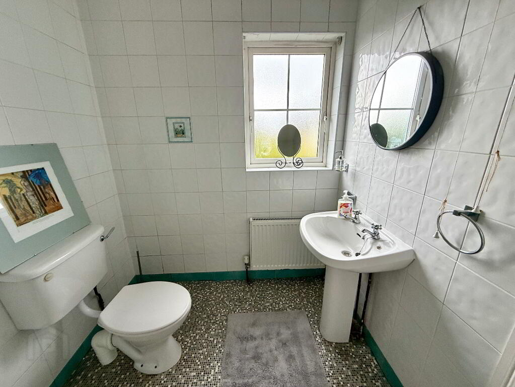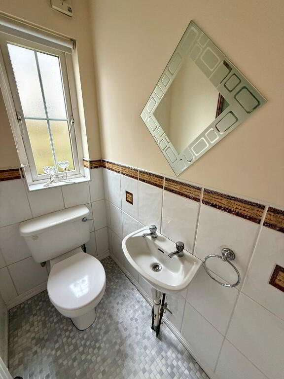 Downstair WC WC and wash hand basin, partly tiled walls.