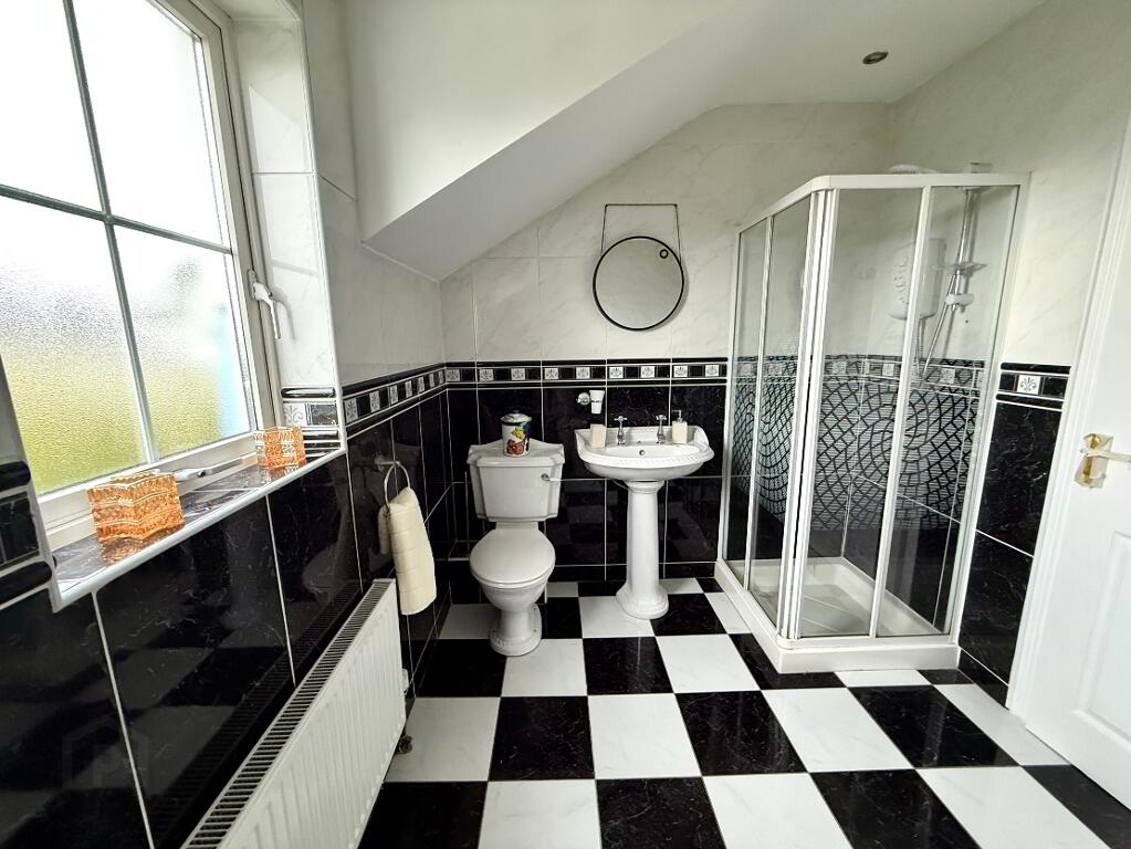 Ensuite Fully tiled walk in shower, wash hand basin and WC, fully tiled walls.