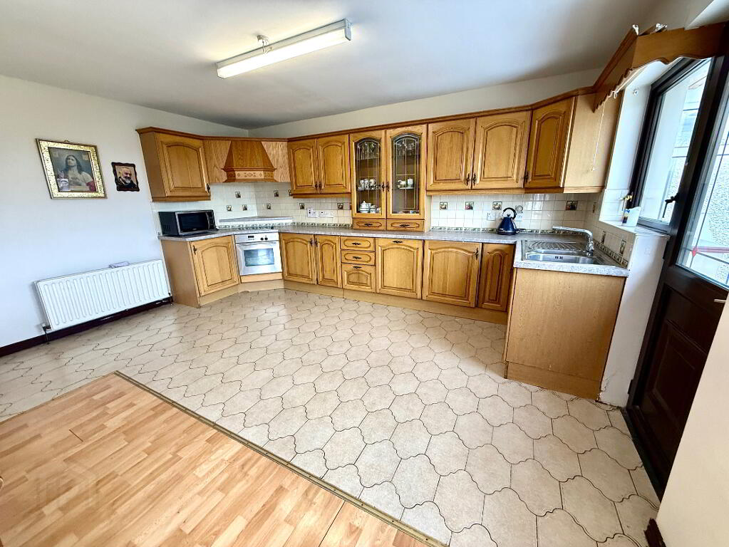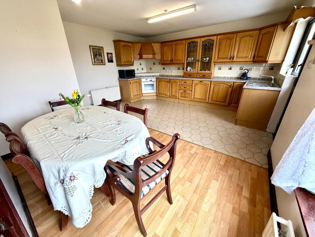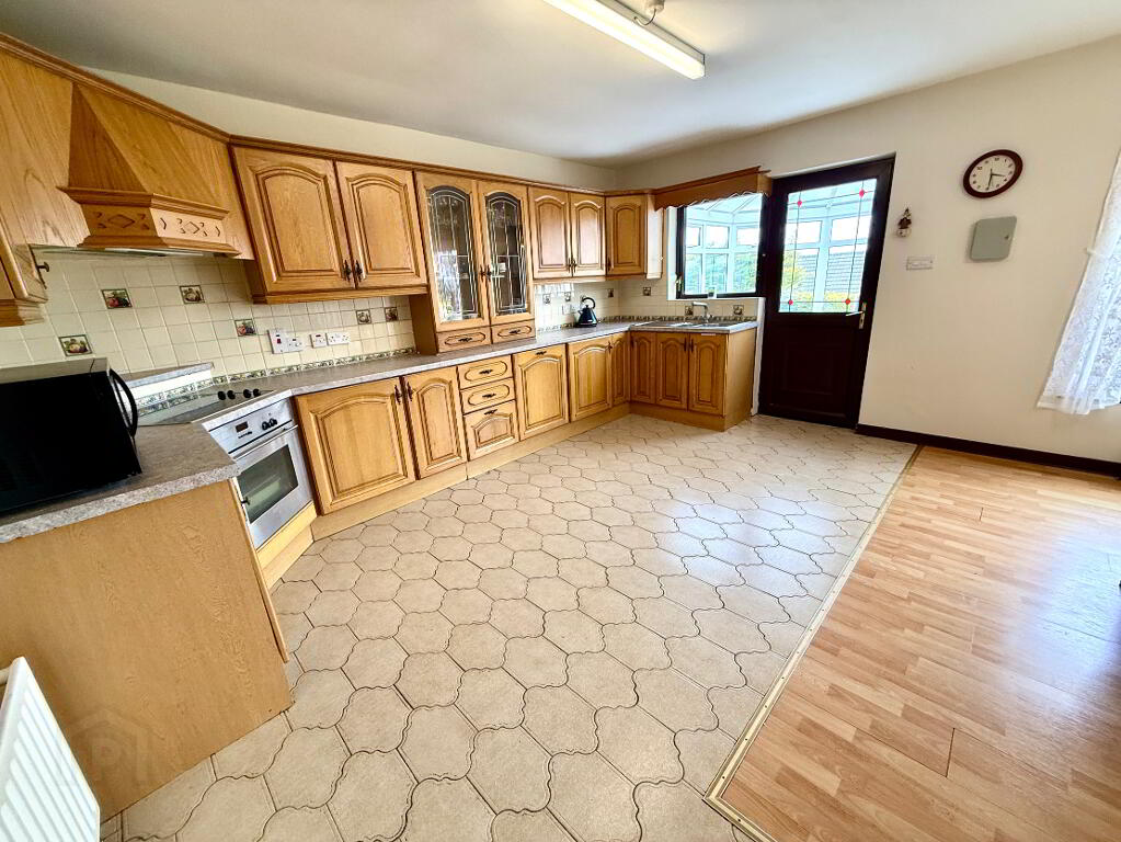 Kitchen/Dining 19'5 x 15'4 (to widest points) Eye and low level units, glazed display unit, 1 1/2 bowl stainless steel sink unit with mixer tap, hob, oven and extractor fan, integrated dishwasher, integrated fridge and integrated freezer, partly tiled walls, tiled floor in kitchen area, laminated floor in dining area.