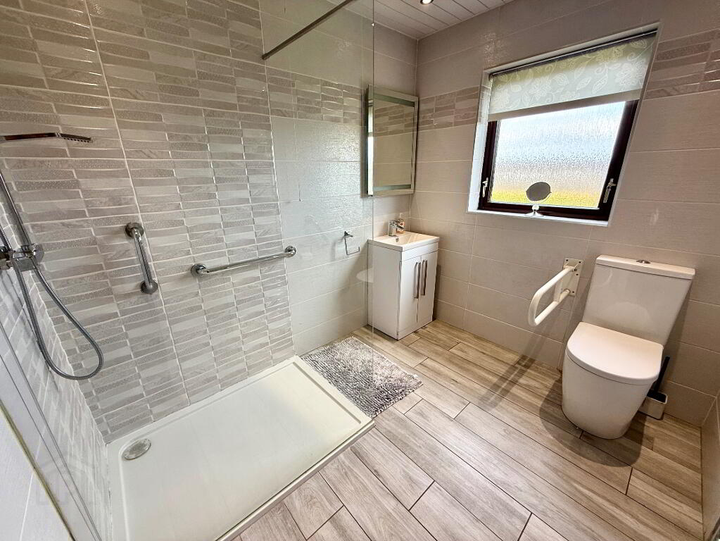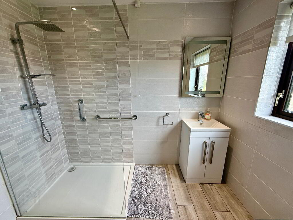 Shower Room Walk in shower, wash hand basin and WC.