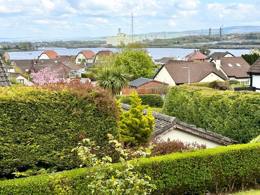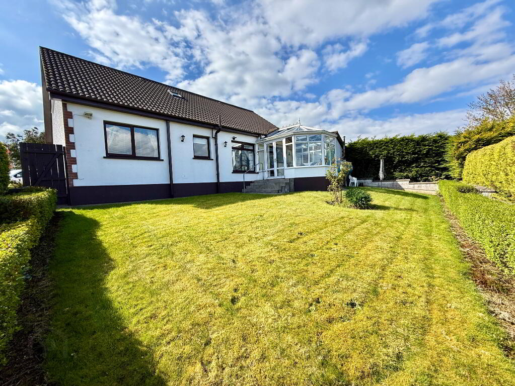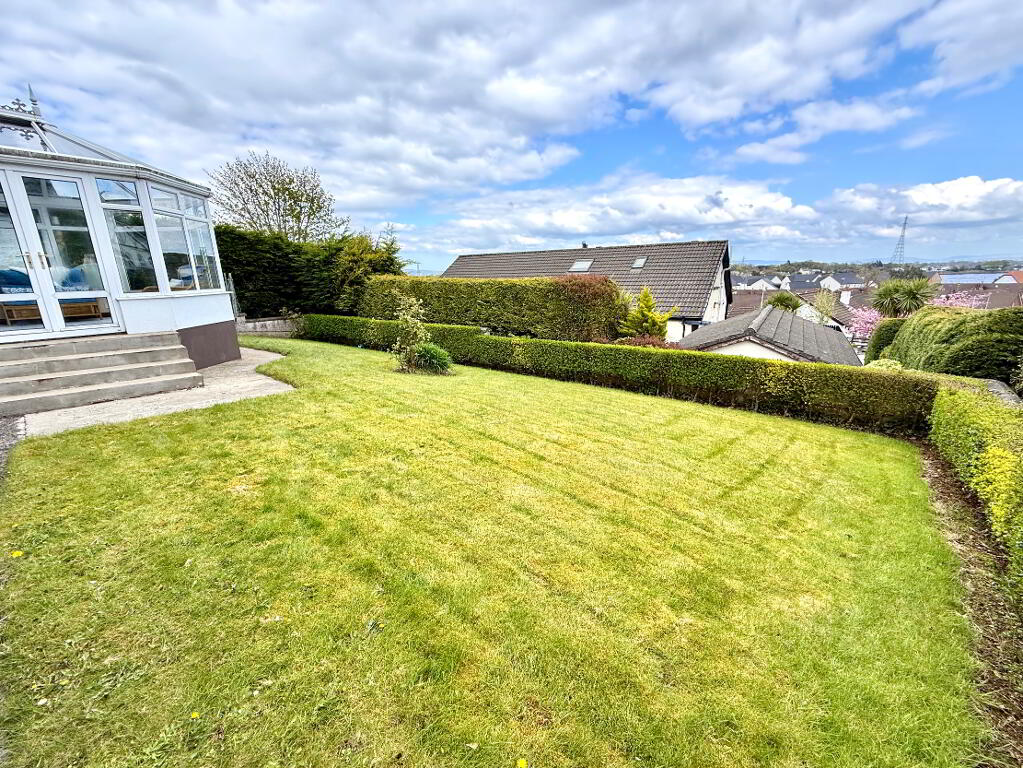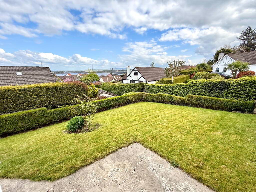 Garden to rear laid in lawn enclosed by wall and hedge with views over Lough Foyle.