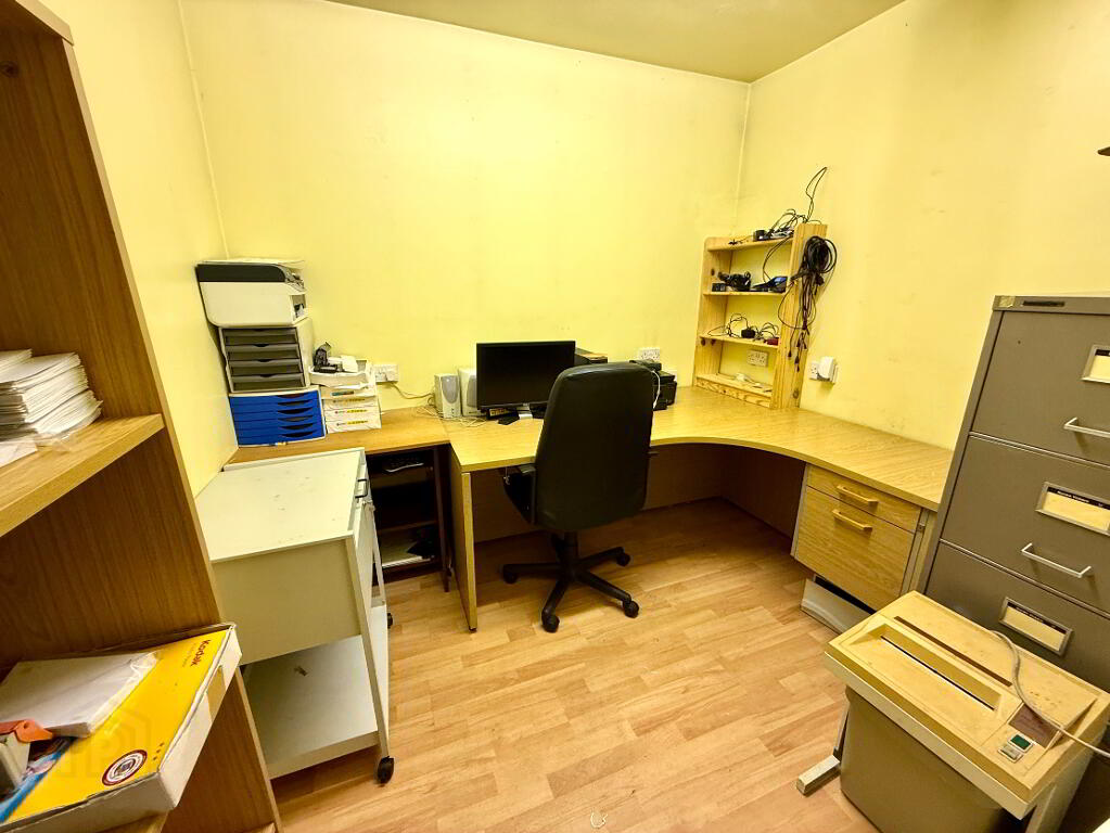 Garage Currently used as a home office and storage areas, up and over door, side door, lights and power points.