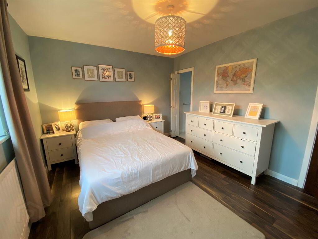 Bedroom 1 12'10 x 10'9 Laminated wooden floor, double built in wardrobe. En-suite fully tiled walk in power shower, wash hand basin set in vanity unit, wc, partly tiled walls and tiled floor