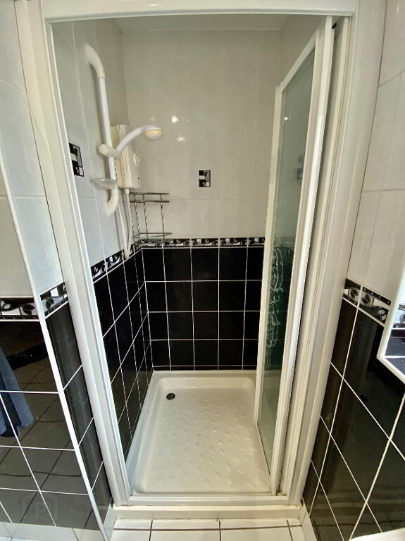Bathroom Bath, wash hand basin, WC, fully tiled walk in electric shower, fully tiled walls, tiled floor