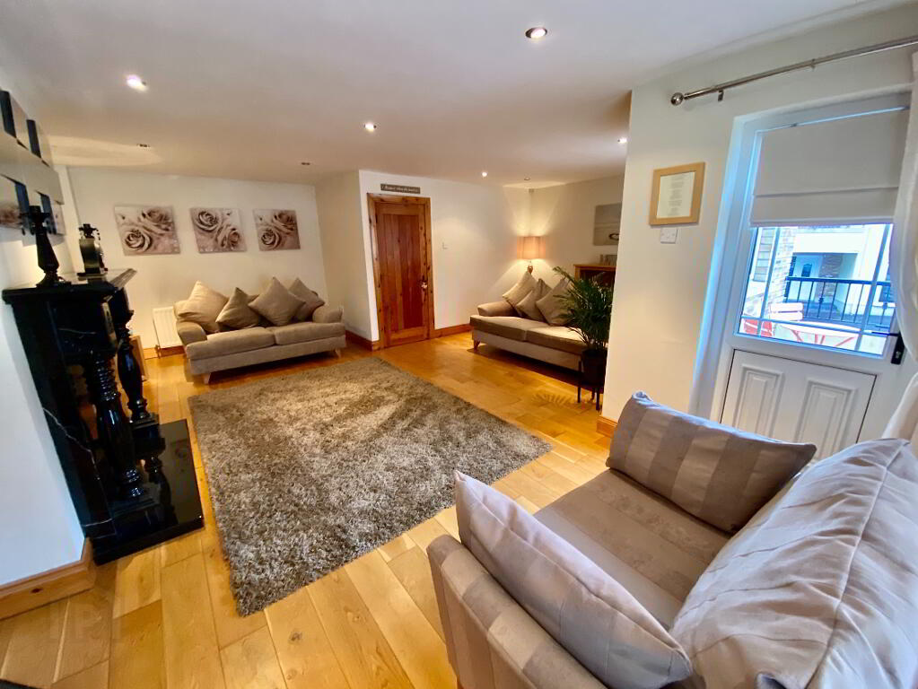 Lounge 22'3 x 20'10 (to widest points) Cast iron fireplace with black marble surround and granite hearth, wooden floor, recessed lighting, door to balcony