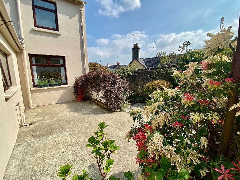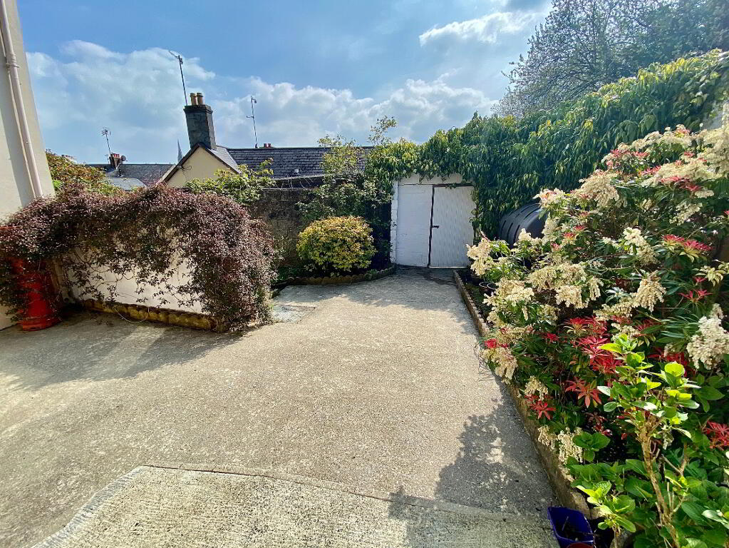 Garden area to front enclosed by wall and hedge enhanced with plants and shrubs