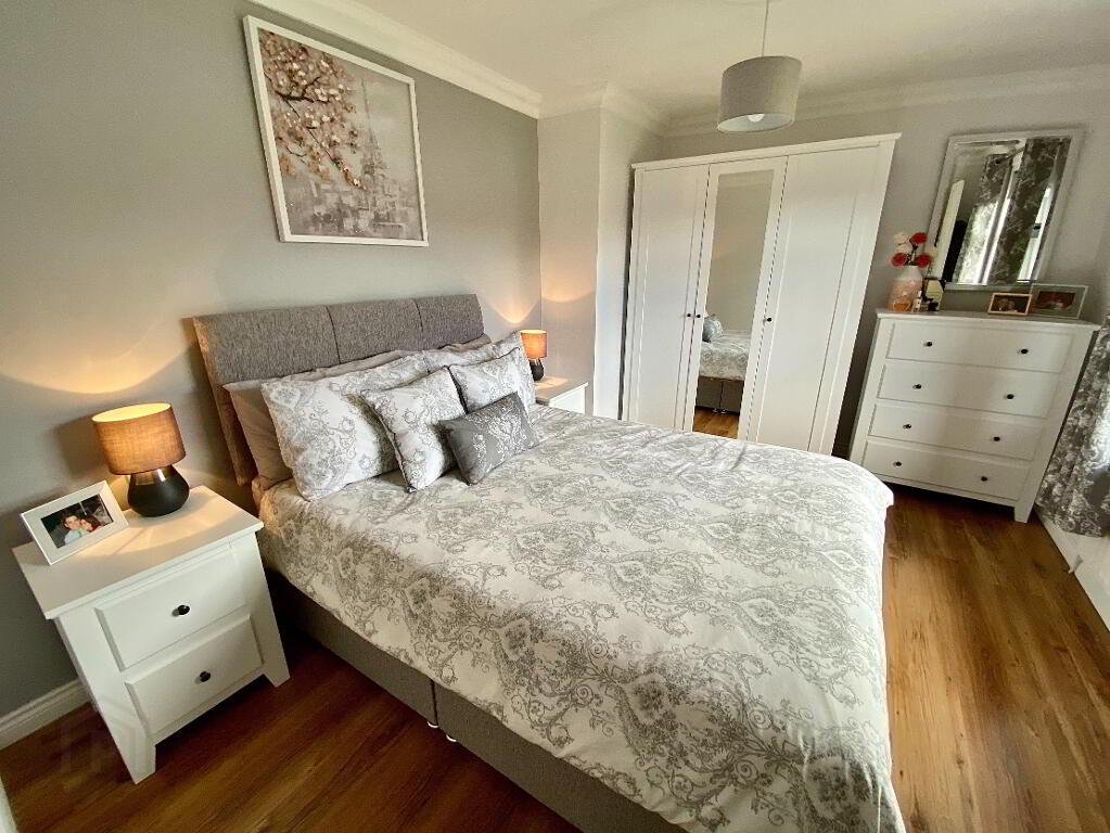 Bedroom 1 12'8 x 9'8 (to widest points) Laminated wooden floor, ceiling cornicing and centre rose