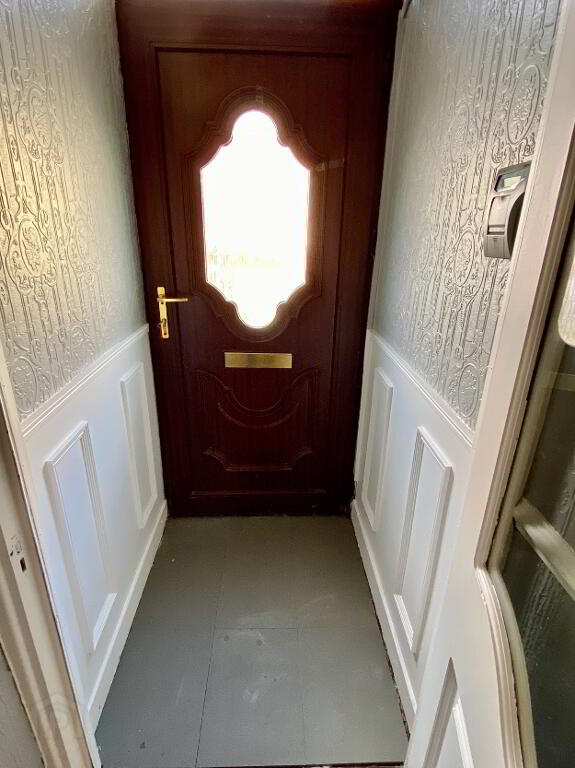 Vestibule Porch with tiled floor, walls partially wood panelled