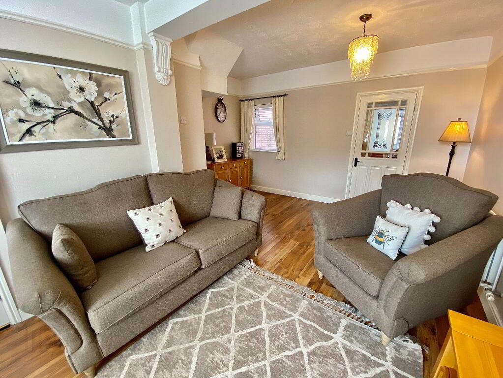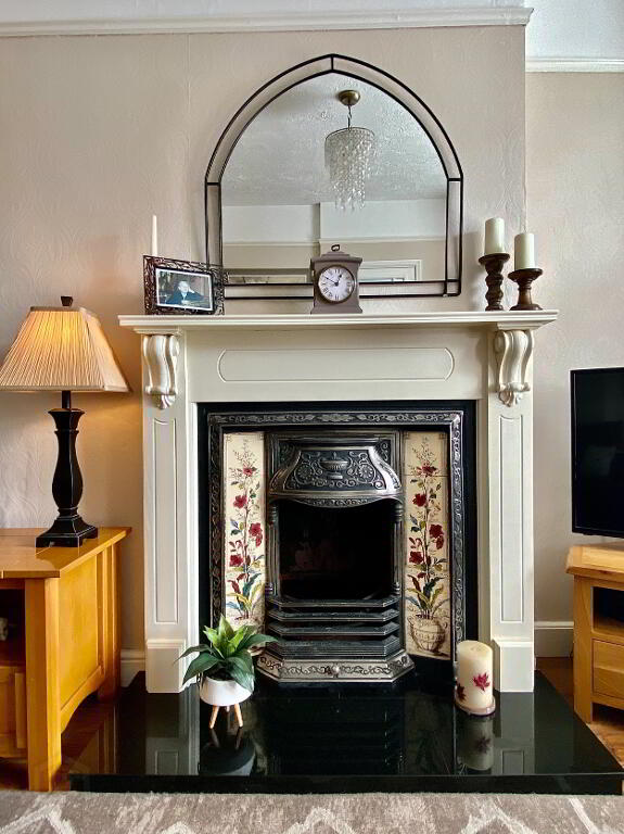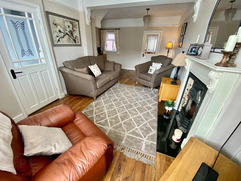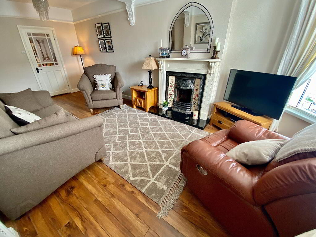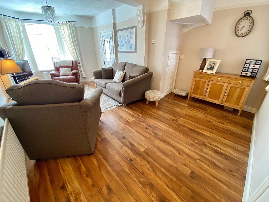 Lounge 20'8 x 13'5 (to widest points) Bay window, cast iron fireplace with wooden surround and granite hearth, picture rail, laminated wooden floor