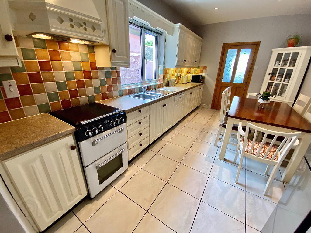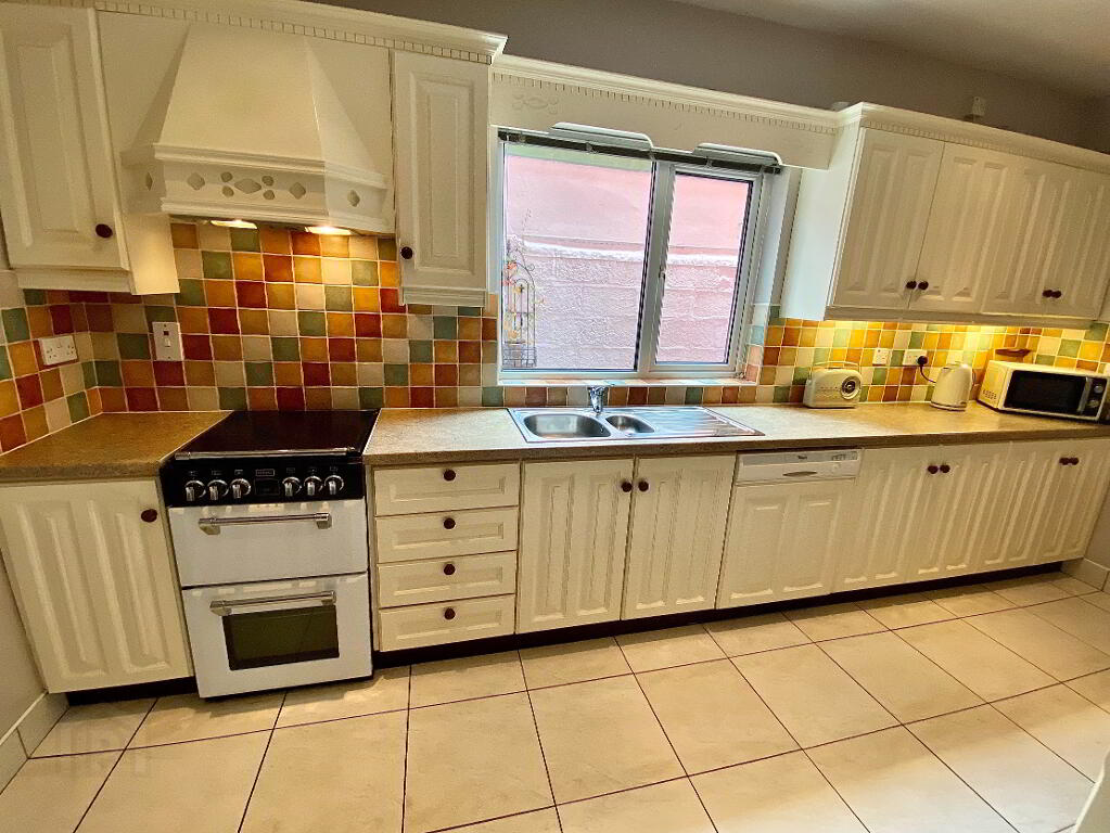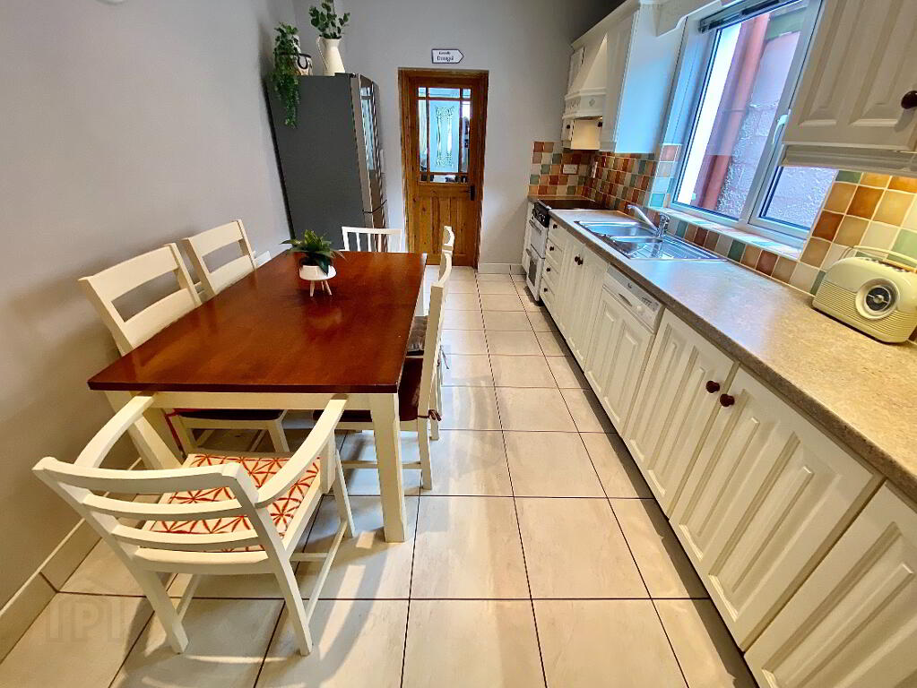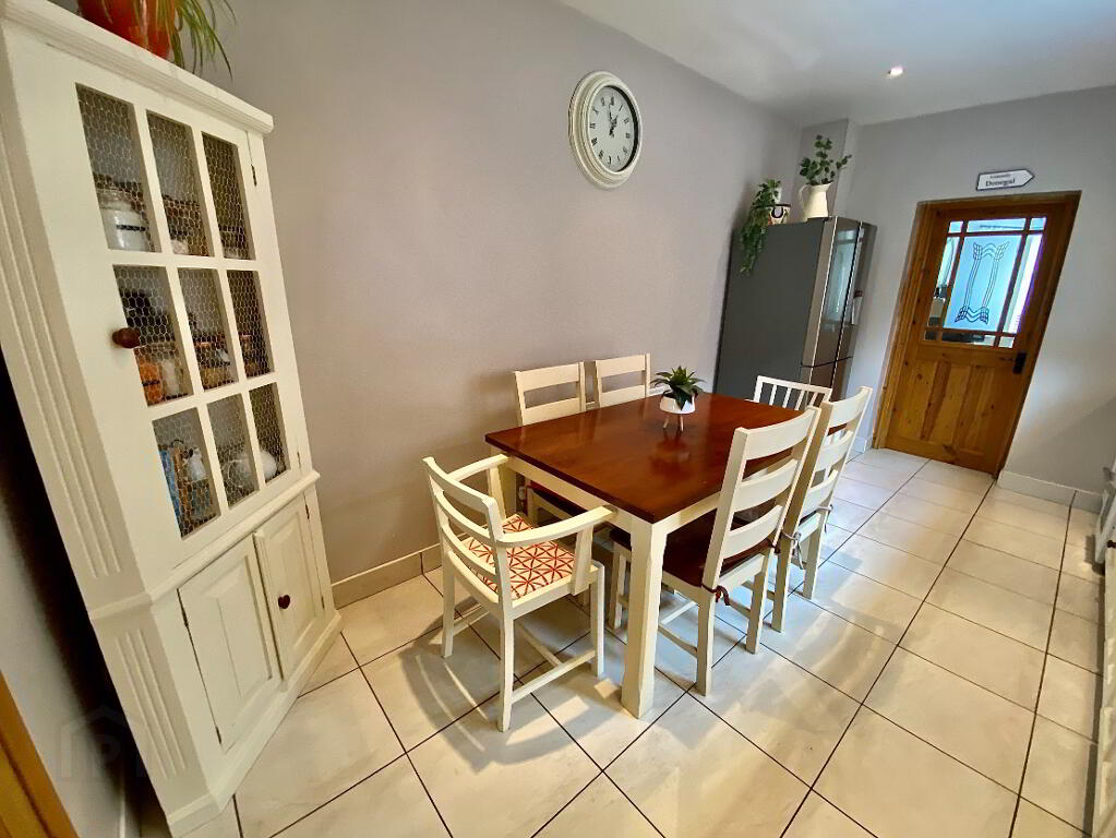 Kitchen/Dining 15'7 x 9'3 Eye and low level units, 1 1/2 bowl stainless steel sink unit with mixer tap, wired for electric cooker, integrated dishwasher, partly tiled walls, tiled floor, recessed lighting