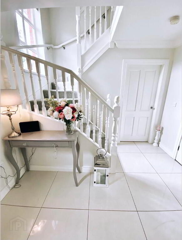 Entrance Hall with tiled floor, radiator cover, ceiling cornicing