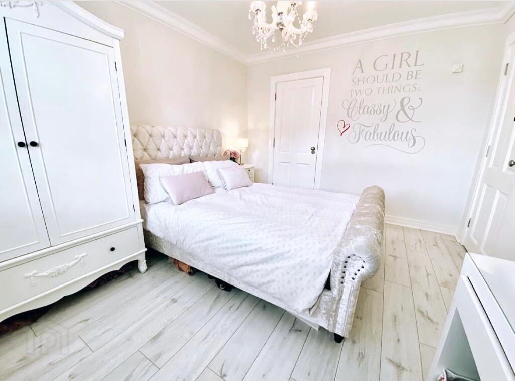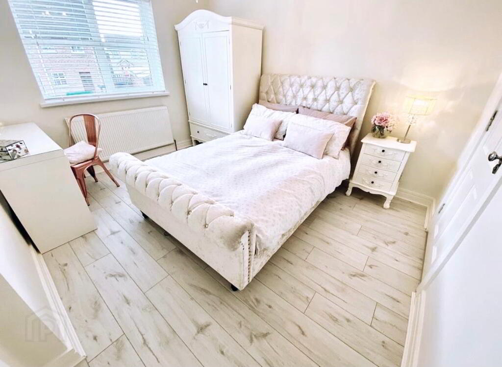 Bedroom 1 11'11 x 9'9 Ceiling cornicing, laminated wooden floor. En-suite; Fully tiled walk in electric shower, wash hand basin and WC, fully tiled walls, tiled floor, wall mirror