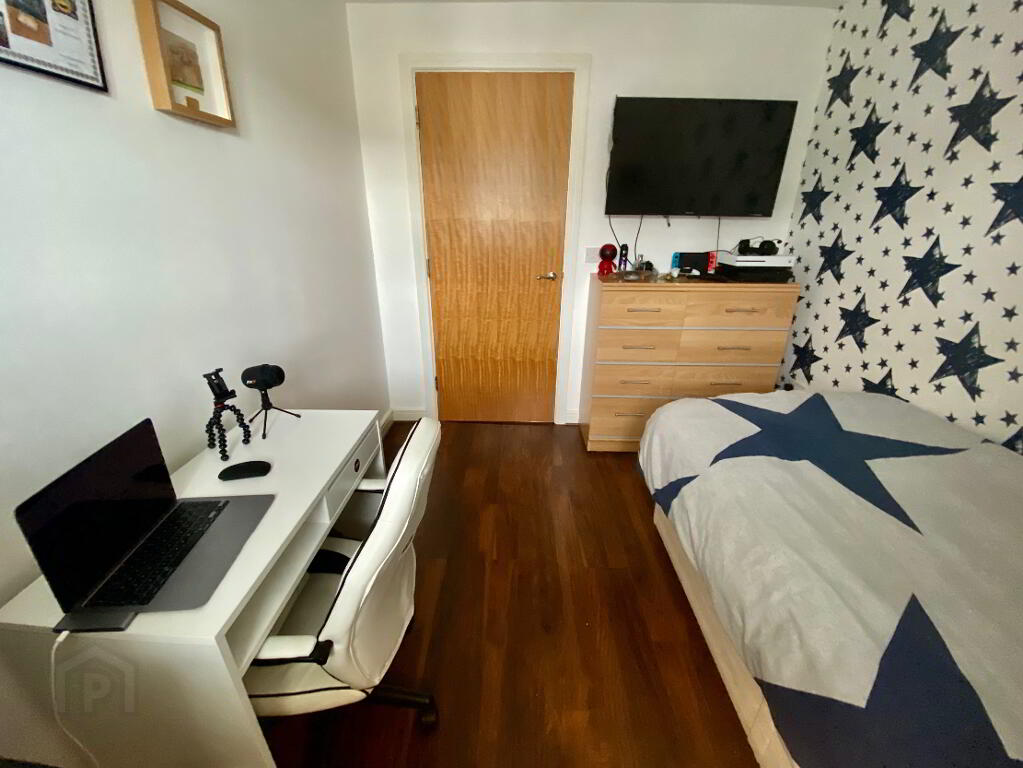 Bedroom 2 12'10 x 11'1 (to widest points) built in mirror sliderobes and drawers, laminated wooden floor
