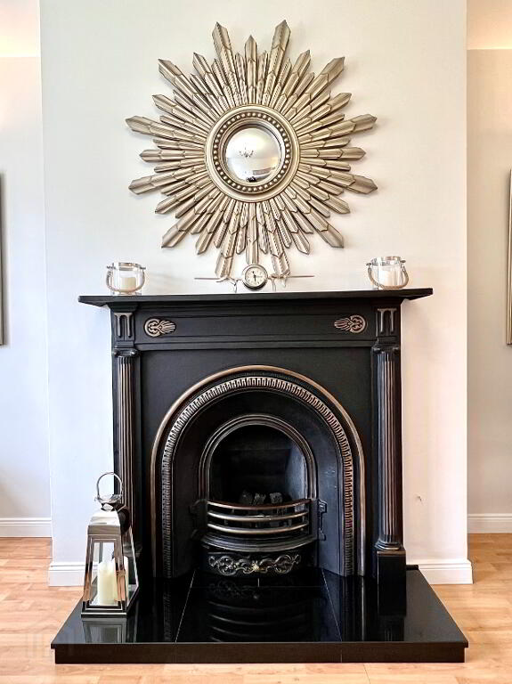 Lounge 15'4 x 12' (to widest points) cast iron fireplace with granite hearth, wall lights, laminated wooden floor, double doors to kitchen/dining