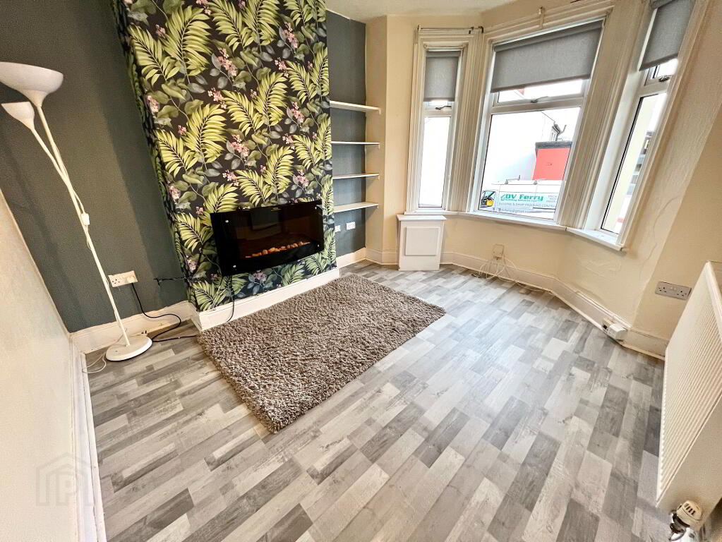 Lounge 11'9 x 9'11 (to widest points) Bay windows, wall mounted electric fire, laminated wooden floor.