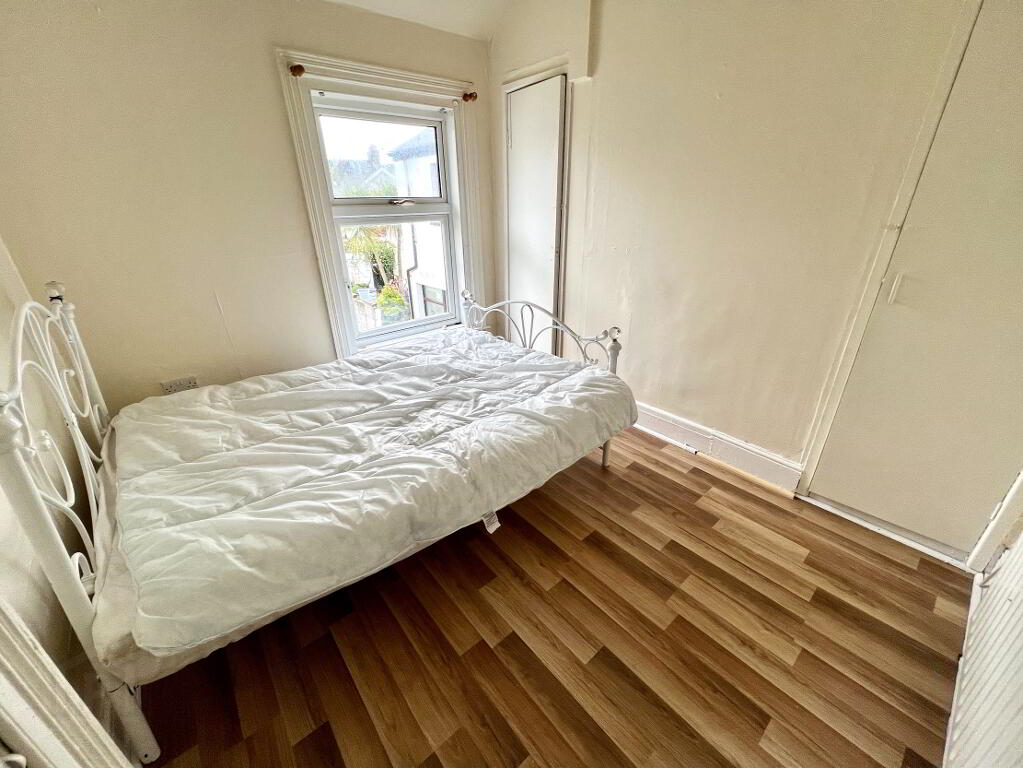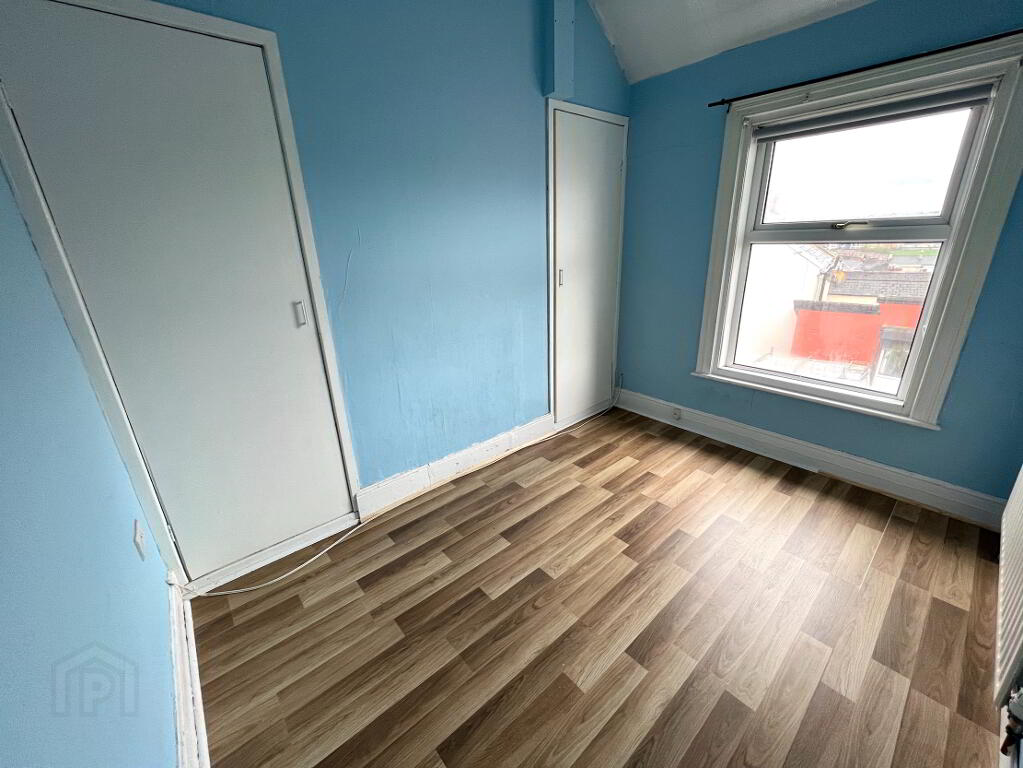Bedroom 2 9'9 x 7'4 Built in cupboards, laminated wooden floor.