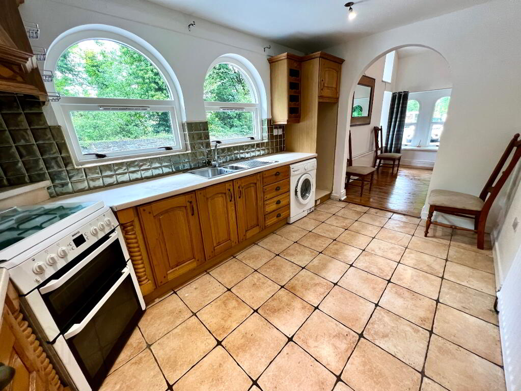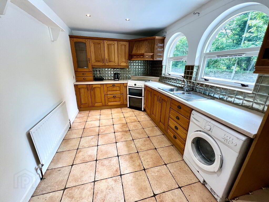 Kitchen/Dining 13'8 x 8'4 Eye and low level units, glazed display unit, 1 1/2 bowl stainless steel sink unit with mixer tap, piped for bottle gas cooker, plumbed for washing machine, partly tiled walls, tiled floor.