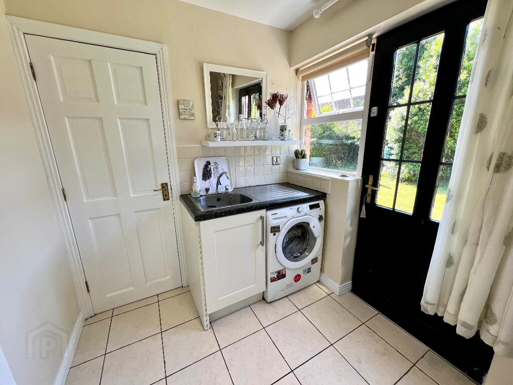 Utility Room 8'1 x 6'5 Eye and low level units, single drainer stainless steel sink unit with mixer tap, plumbed for washing machine, space for tumble dryer, partly tiled walls, tiled floor.